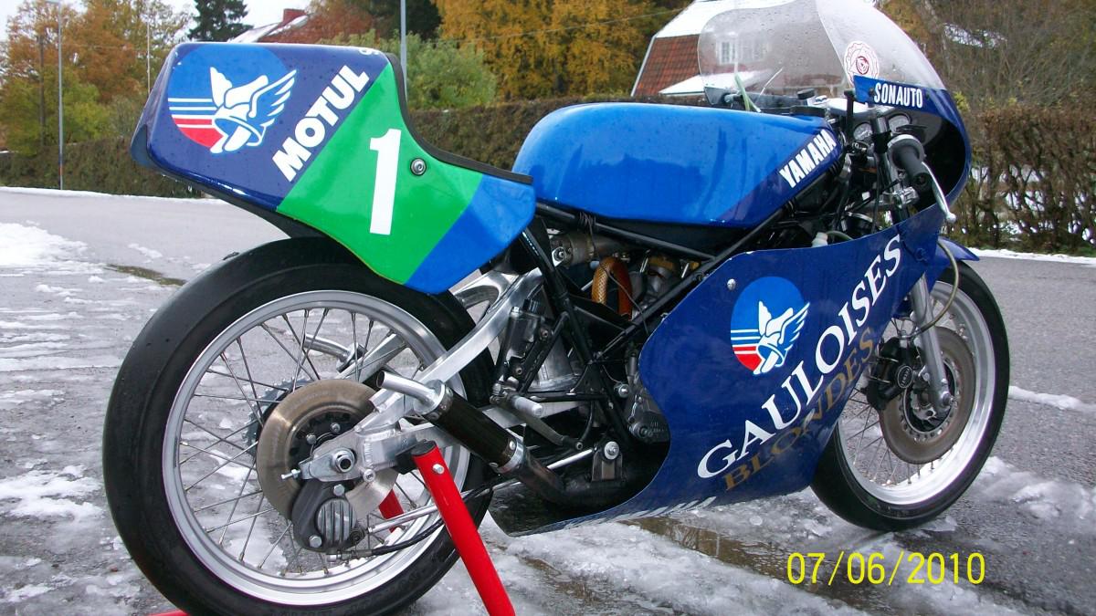 I bought this bike in 1989 from a guy working at the French embassy in Stockholm. Last man to use this bike in mid eighties was Bruno Vecchioni. After a phone call to Bruno Vecchioni he told me this : For him in 1982 and 1983 the bike was ride by Thierry RAPICAULT . Rapicault racing in French championship. For 1984 the bike was stored Bruno Vecchioni get a job with Yamaha Sonauto middle of 1984 , and he asked if can use the bike for racing . So he made with the bike National 250cc French championship 1985 and 1986 For finish , he said , in 1987 he get a NEW TZ 250cc and he keep the bike like N°2 two bike . Then sold to the French guy who worked in the French embassy in Stockholm . Imported from France to Sweden in 1987. Restored engine with JPX cylinder barrels.Very good condition with original paint from the Sonauto Team